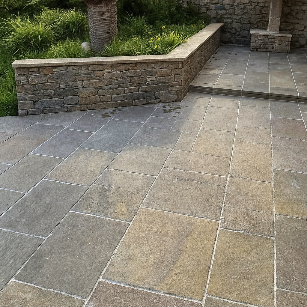 Notre dallage en granit gris clair est une pierre naturelle robuste dans les tons gris, mouchetée de pigments blancs et noirs, donnera un aspect moderne et sobre à votre espace.