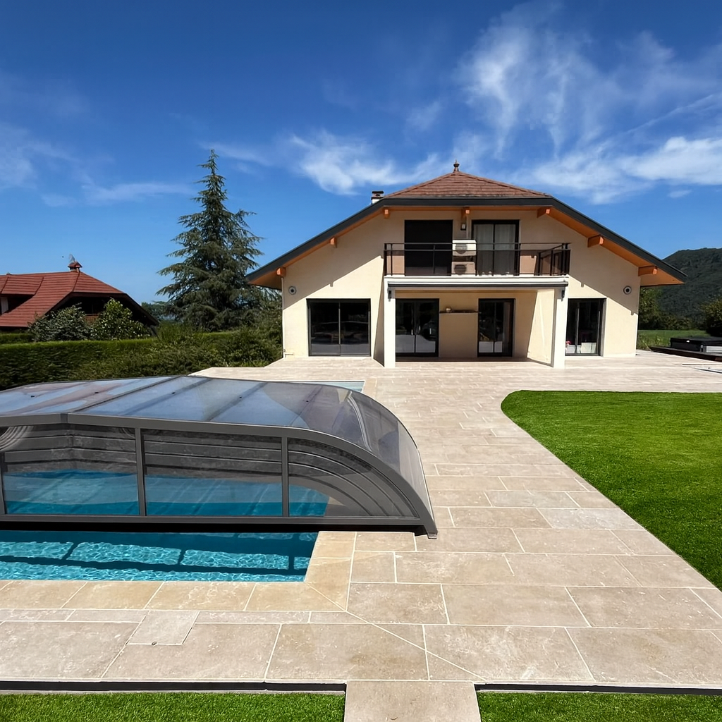 Le dallage IRON STONE BEIGE, en pierre naturelle d’Égypte de couleur beige clair, apporte élégance et luminosité à votre terrasse.